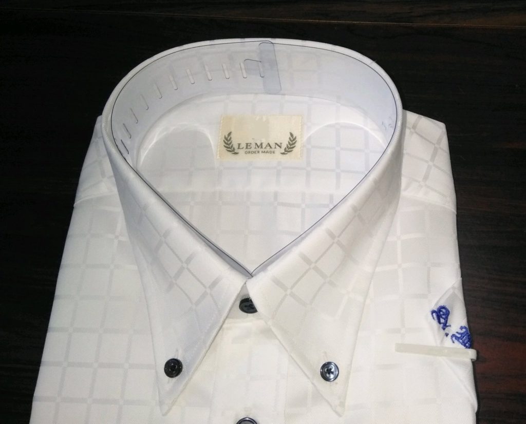 その点オーダーメイドシャツの場合、まず豊富にある生地の中 からお好みの色・柄を選んでいただきます。そして「衿型・カフスデザイン・ボタン ・イニシャルネーム」など、お客様と会話しながら決めていきます。同じ柄でも衿型やボタンの色が違えば全く違うシャツに仕上がります。そしてオーダーシャツの最大のメリットはきめ細かい採寸をしますので フィット感が既製品とは全く違います。